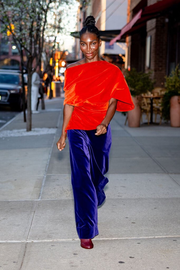 Milla played up the golden-girl factor with matching Swarovski chain earrings, an embellished minaudiere and strappy sandals.