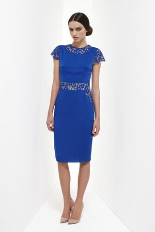She wore a vibrant blue Collette Dinnigan Resort 2013 dress.