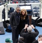Beyonce Knowles was accompanied by husband Jay-Z as they made their way along the West Front of the U.S. Capital in Washington, D.C. this morning to take their front-row seats to witness the second inauguration of President Barack Obama – plus, she was also there to perform the national anthem.