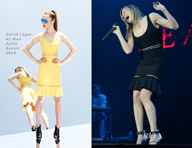 LeAnn performed wearing a figure-hugging Hervé Léger by Max Azria Resort 2013 dress.