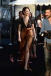 On this occasion, Olga delights wearing a sleek Burberry gown, which features a beaded bodice and a luxe satin caramel-coloured skirt with a overlapping side slit.
