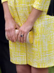 Her polished look was styled with pearl-drop earrings, a Jane Corbett hat, and her signature accessories including nude L.K.Bennett pumps and a matching clutch.