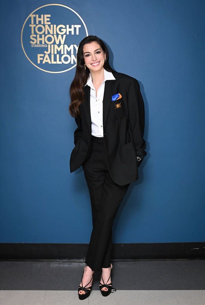 She made the right decision to belt this high-neck nude-and-black frock, otherwise there was a danger it would’ve overwhelmed her petite frame.