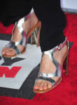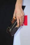 Keeping the styling simple and effortless, she accessorized with silver Stella McCartney Spring 2014 sandals and a wooden Stella McCartney clutch.