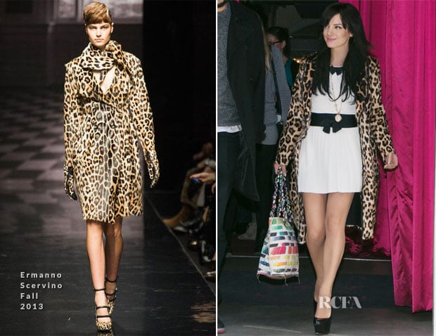 Yes, the dress was short. But the real attention-grabber of the look had nothing to do with Chanel designer Karl Lagerfeld’s collection. Rather, her bold Ermanno Scervino Fall 2013 leopard coat was responsible for taking the charm factor into more untamed territory.
