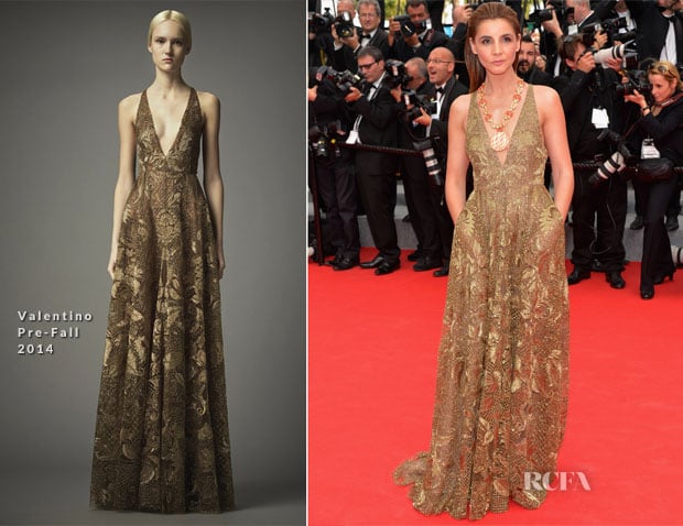 The actress wore a Valentino gold lace Pre-Fall 2014 gown with a plunging neckline, which you may remember seeing on Naomie Harris at the NAACP Image Awards back in February.
