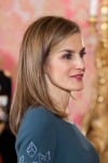 As it is customary for royal women to wear a full-length dress to the Pascua Militar ceremony, Queen Letizia wore a Felipe Varela teal-green gown featuring rich embroidery cascading down the sides and sleeve, which was accented with a beaded tonal belt.