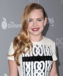 Britt Robertson: The starlet was charming in a Dior white compact Milano wool jersey dress with sequin embellishment. A Dior clutch, deep burgundy lip, and glossy curls enhanced the swingy little frock.
