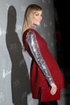 Jaime King: The pregnant actress was positively radiant in a Christian Dior Pre-Fall 2015 red wool dress that received the glitter treatment with a pink sequin top. She also wore a Dior matching red clutch, Dior black patent boots, and Dior pearl earrings. I can’t help smile at this happy look and its retro flair—right down to the bubblegum-pink lip.
