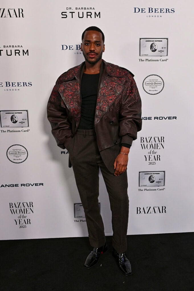 Look 4: JLo was in urban warrior mode when she donned this Dsquared2 custom bodysuit embroidery emphasized with unique navajo-like print details worn with a coat from the Fall 2015 runway. I liked this look until she removed the coat.