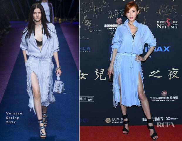 The beautiful actress donned Versace Spring 2017 from head-to-toe.