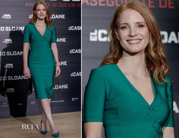 Not long after hanging up her 2017 Met Gala gown, Jessica Chastain was back on the red carpet for the ‘Miss Sloane’ photocall in Madrid on Wednesday (May 3).