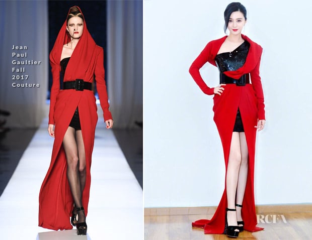 Tencent Star Awards 2017: This Jean Paul Gaultier Fall 2017 Couture design was equally eye-catching for a completely different set of reasons. The sharp contrast of the red draped gown over the black mini underneath was thoroughly striking on Fan, especially against her alabaster complexion. De Beers jewels added a well-placed element of additional glamour. Yet again, I wasn’t even bothered by the platforms on the basis of the strength of her look—and the fact that she likely needed the height for the dress.
