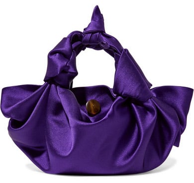 First up, she was a vision in amethyst-purple with this Vivienne Westwood dress that was draped and cinched to perfection on her way to the SiriusXM Studios. I love the extra flair that came from the split sleeves. And, even though I’m generally not one for white pumps, they pulled the look together when paired with retro-inspired, white shades. A matching purple satin tote from The Row completed the striking ensemble.