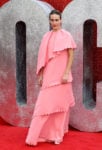 The actress was showcasing her sartorial style once again in Valentino’s Fall 2018 hot-pink asymmetric, scalloped dress.