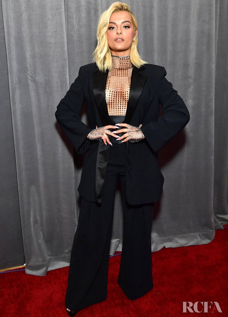 A pantsuit is nothing new on the red carpet, yet Bebe Rexha infused modern silhouettes and textures at the 2020 Grammys Awards on Sunday (January 26) in Los Angeles.