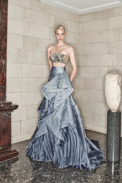 I love how the colours on the skirt evoke looking up at the sky and seeing a passing rain cloud with the light hues signifying after the rainstorm and the sequin bandeau the rays of light as the sun comes back out.