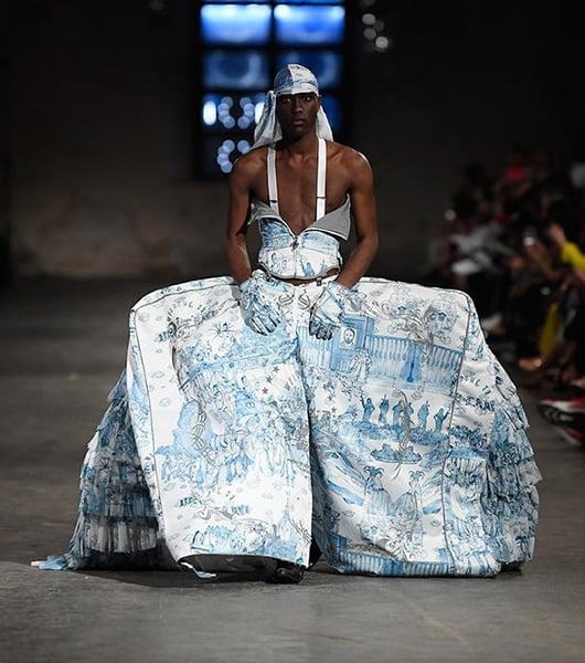 This ensemble from the designer’s debut collection explored themes and prints around Catholicism – the same theme that Lil Nas X touched on his latest single ‘Montero (Call Me By Your Name).’