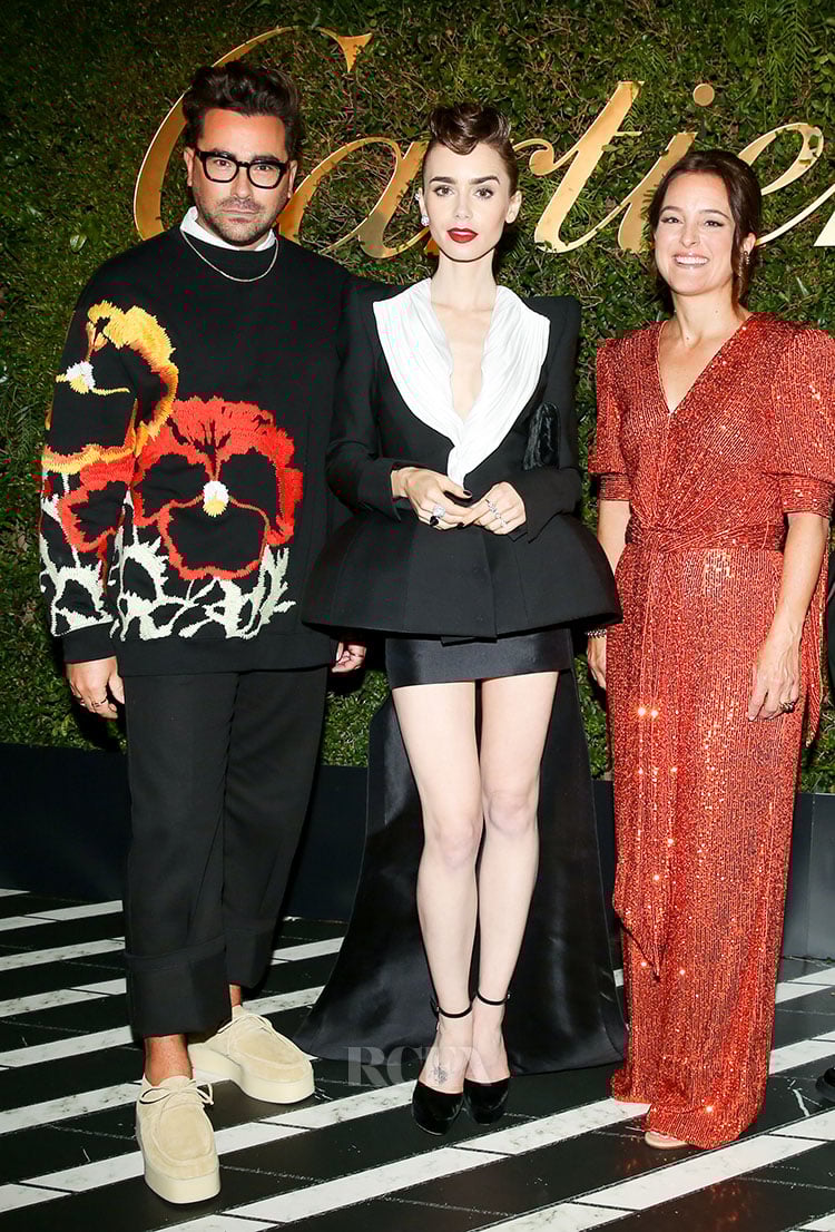 Dan Levy joined Lily Collins at the Cartier launch of Clash [Un]limited and Clash de Cartier dinner party held in LA.