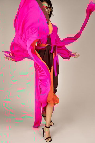 We had an indication that Olivia wasn’t afraid of colour-blocking at the Emmys, and it looks like she wanted to step things up a few gears with this Roland Mouret Amal gown from the Fall 2021 collection.