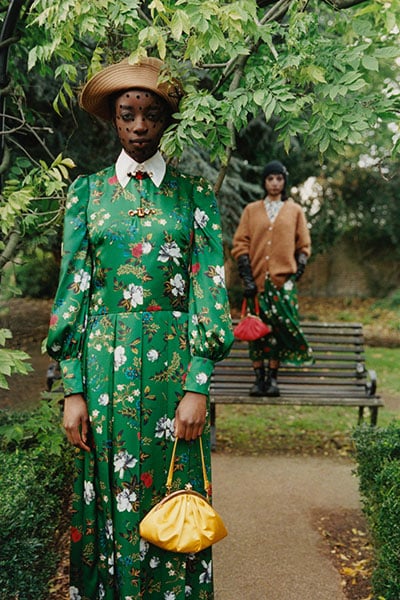 The actress wore an enduringly elegant Erdem Pre-Fall 2021 dress with blooming florals illuminated against a lush green backdrop.