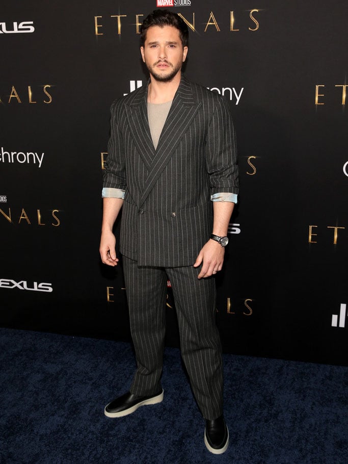 Kit Harington usually goes the classic route, but on this occasion there was a more relaxed feel about his Fear of God pinstripe suit and leather loafer look.