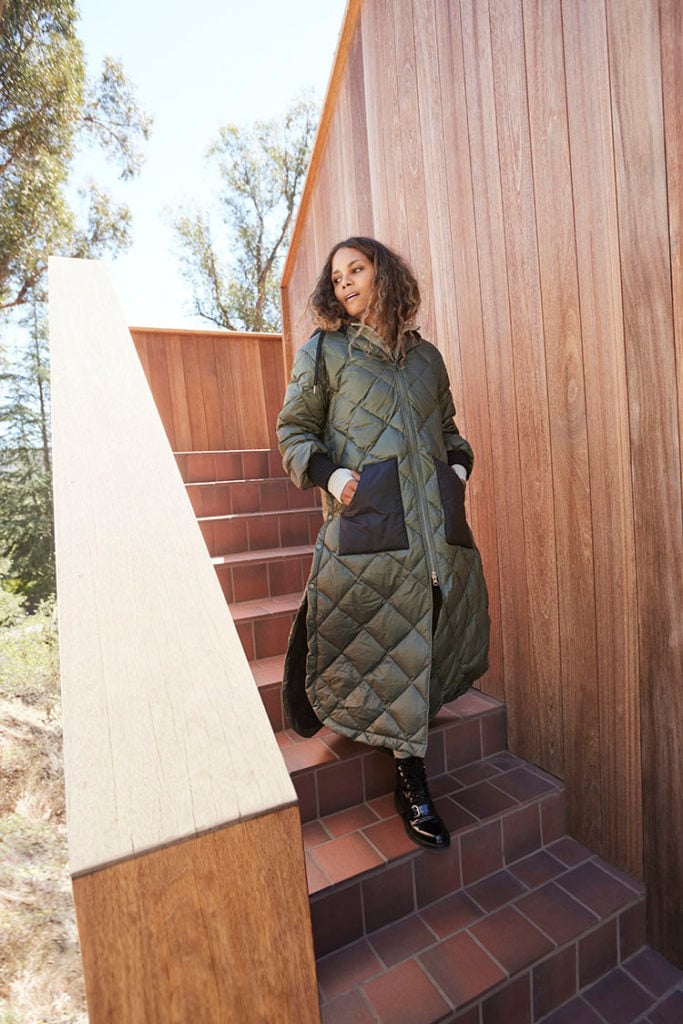 The fall drop of The rē•spin Edit focuses on effortless layers in time for cozy season, with an understated colour palette of soft greens, warm creams and deep, earthy blacks inspired by Halle’s love of nature.