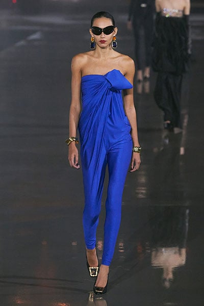 Tracee Ellis Ross was electrifying as always wearing an electric blue Saint Laurent Spring 2022 jumpsuit with the runway jewels and Saint Laurent blue toe cap pumps.