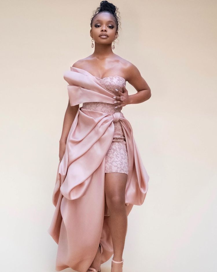 Marsai Martin’s custom Dolce & Gabbana look was a two-for-one, as the pink Swarovski crystal embroidery strapless cocktail dress also featured a draping organza skirt.