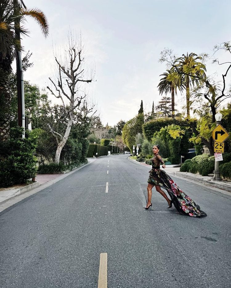 If you squint, you can make out Halle Berry wearing an Elie Saab Fall 2021 Haute Couture floral gown.
