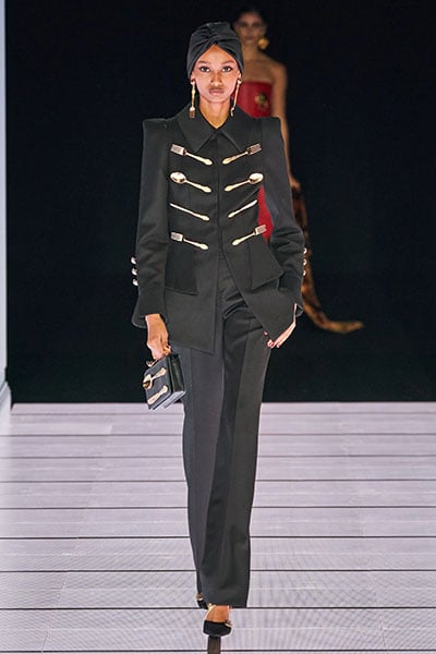 At first glance this Moschino Fall 2022 seems like a well-tailored, embellished, gimmicky-free look.