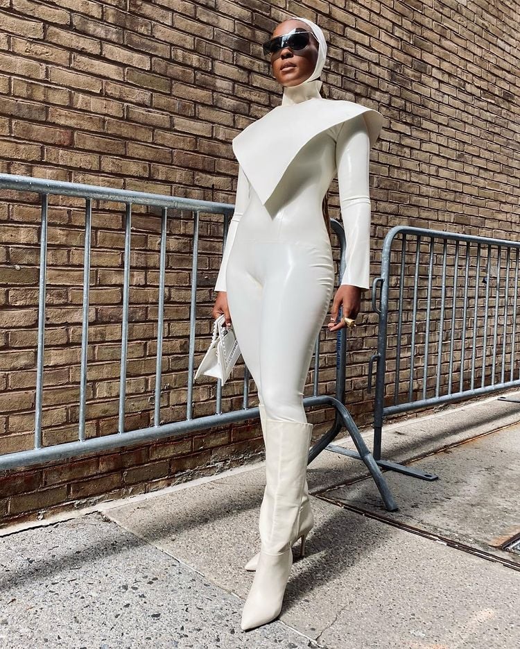 The effort to get into this one-piece must be admired alone, but I think she rocked the hell out of this regardless. What a perfect way to promote her futuristic book.