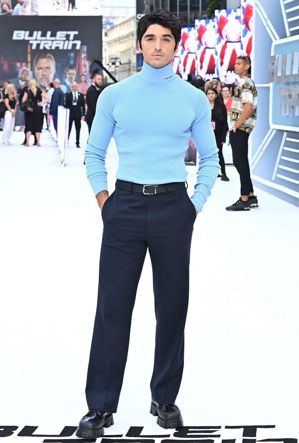 Taylor Zakhar Perez looks so damn handsome in this Prada blue turtleneck, styled with navy trousers and Prada Monolith shoes, that I’m considering contradicting myself with regards to everything I said about turtlenecks being a ridiculous option during a heatwave.