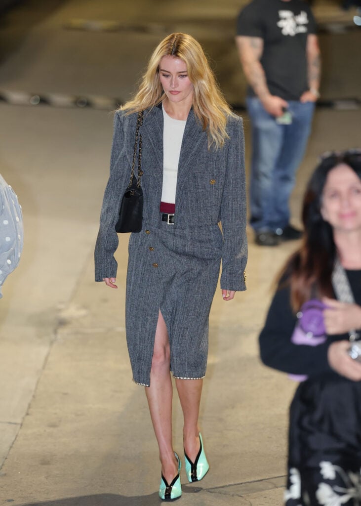 We’ve seen this Alberta Ferretti Fall 2022 iridescent pleated gown a few times now, but that didn’t stop Jessica Wang giving it another outing.