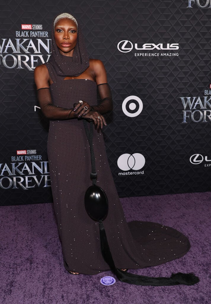 Rocking her third look with a headpiece, Jodie looked radiant wearing a Zuhair Murad Fall 2022 Couture pearled ivory long sleeve hooded gown which didn’t need the green and diamond Chopard necklace on this occasion.