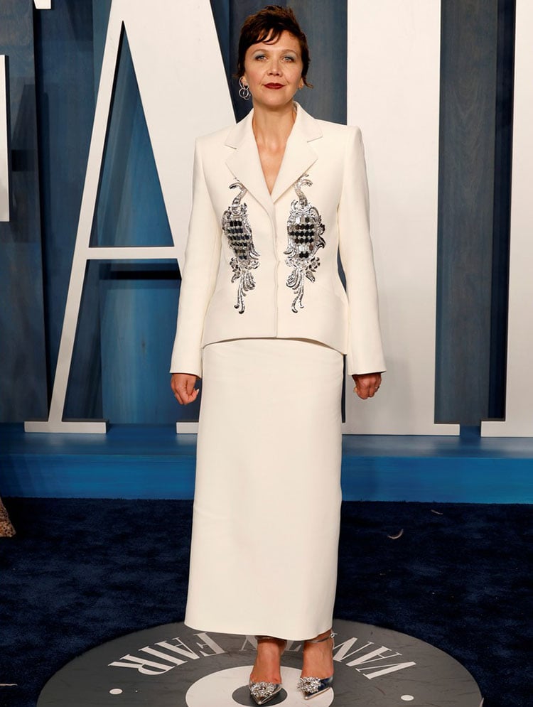 Maggie Gyllenhaal wore two Schiaparelli looks on Oscar night.