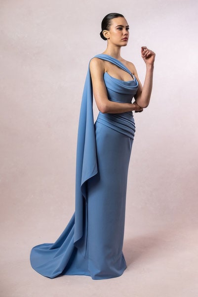 I’m living for the colour, and how the designer used a series of drapes and precise cuts to achieve the ideal amount of floor-sweeping sophistication.