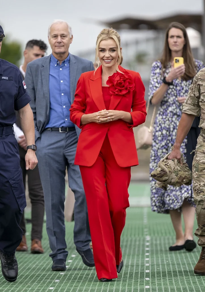 Stephanie Suganami (Shepherd) wore St Agni Helm vest and matching trousers in classic off white which feels so fresh and modern, especially when you discover that the vest has an open back.