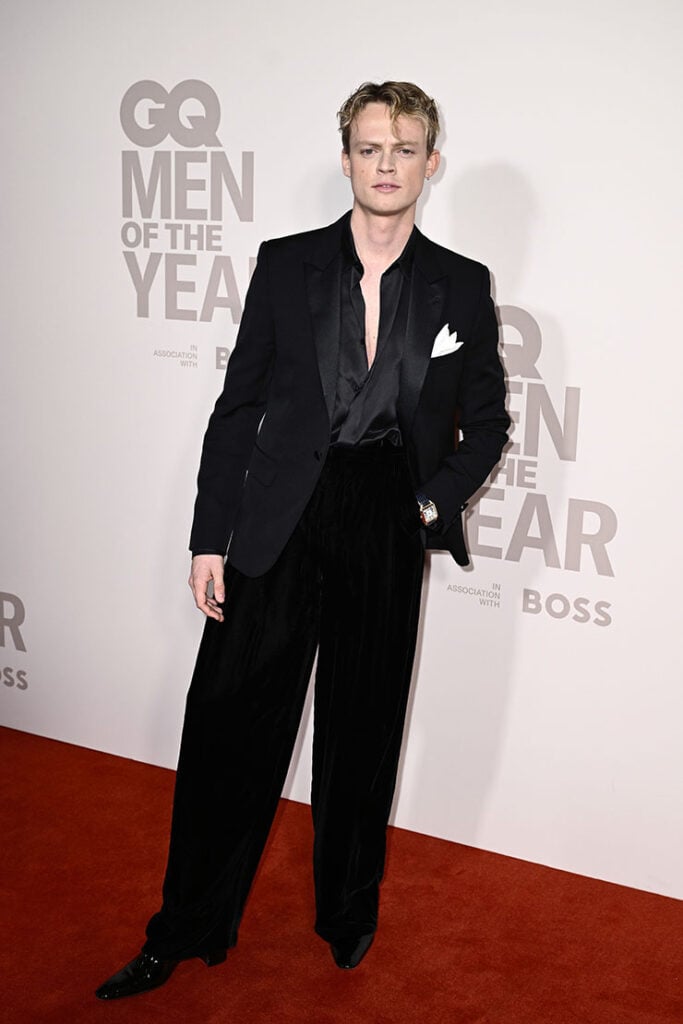 ‘Bridgerton’ star Luke Newton fared much better in his chocolate BOSS suit, in terms of fit, colour and style. This feels a lot more of the moment.
