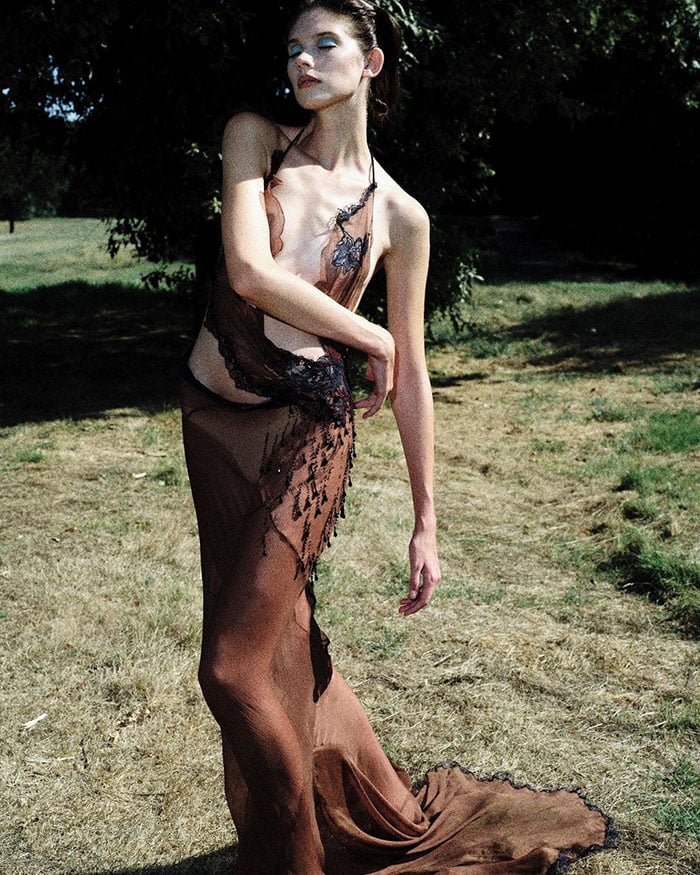 I love how the modern silhouette wraps alluring around her body, along with the colour, and the modifications.