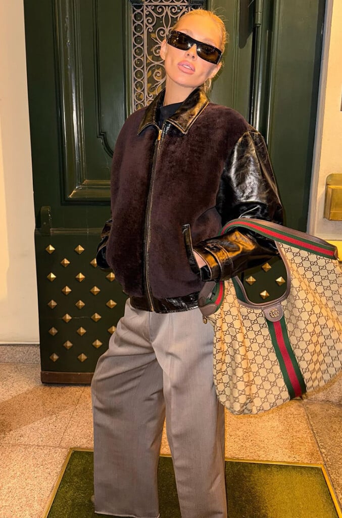 All you need is an oversized blazer that is long enough to provide good coverage, as seen here.