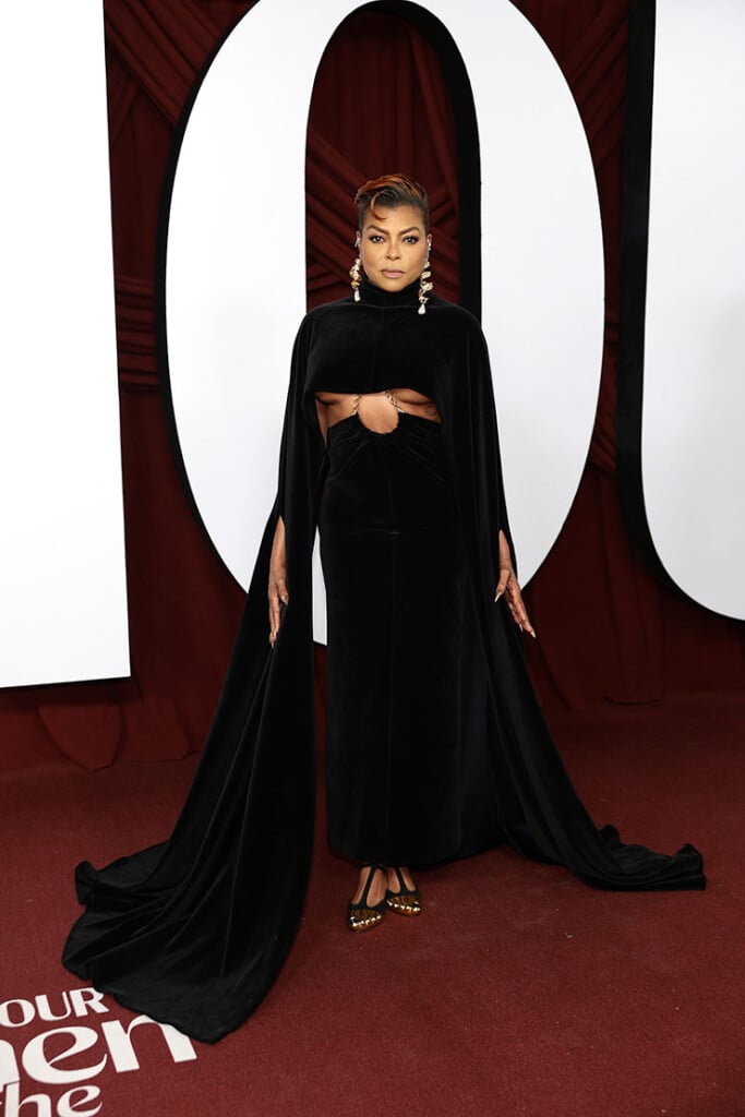 For the occasion, Demi wore a custom Christian Siriano ensemble, consisting of a grey crepe draped top, trousers, and an overcoat.