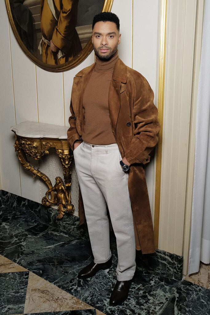 When you think of style and elegance, Regé-Jean Page is undoubtedly in the top tier. Known for being Mr. Suited and Booted—right alongside Nicholas Hoult and Adrien Brody—these gents have successfully translated their classic sophistication into laidback elegance. Case in point: Regé-Jean’s effortless dunhill ensemble. The caramel hue is a departure from his usual navy-and-black palette, and what a treat it is. The warm tone against his complexion is pure perfection. But when it comes to the shoes, would brown have been a better choice than black? Perhaps, but honestly, who’s noticing when the overall look is this swoon-worthy? I love how this proves that refined style doesn’t always require a suit and tie. A Chopard L.U.C quattro watch in platinum completed his look.