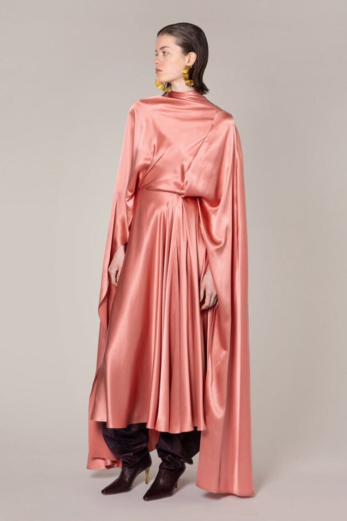 Still deep in her fluid silhouette era, the actress wore a Roksanda Andromeda dress from the Fall 2024 collection, which is aptly named after a Greek goddess believed to be one of the most beautiful to ever live. Crafted from delicate silk that drapes with effortless elegance, the silhouette is finished with a cape that artfully trails down her back, creating a sweeping, almost regal effect.