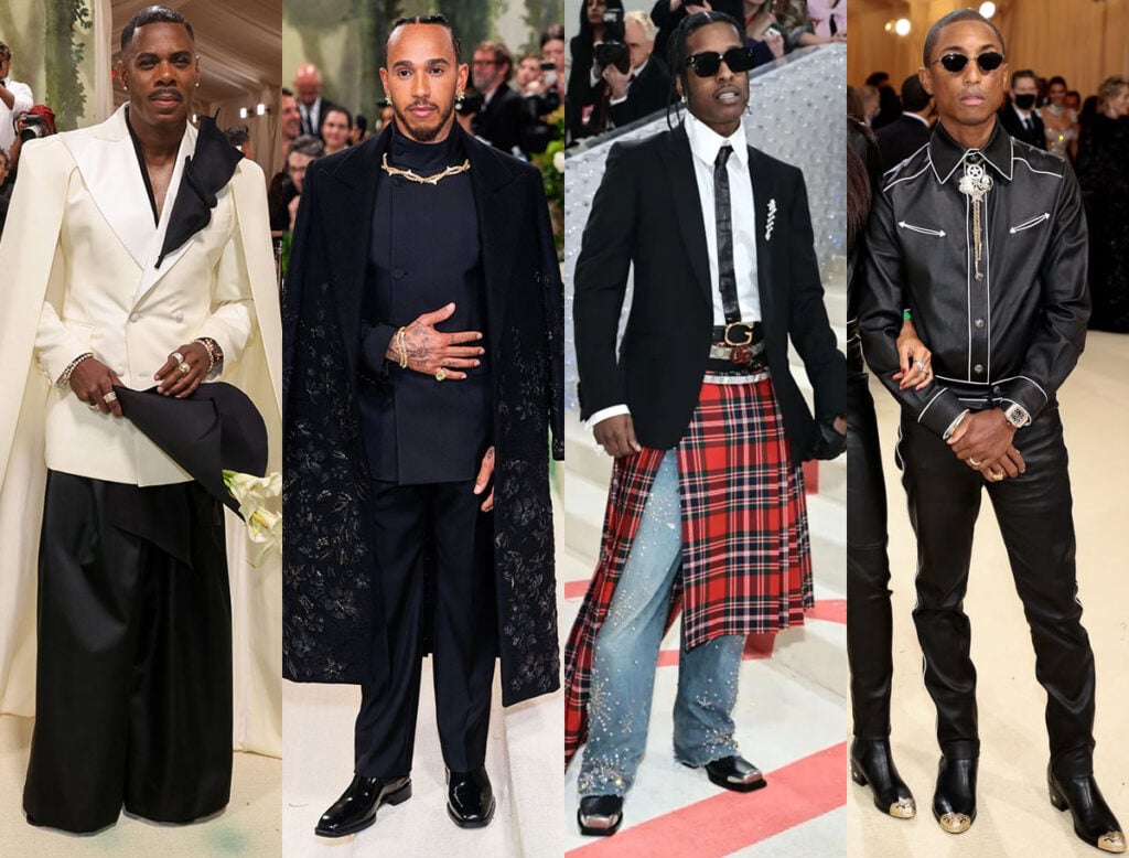 The first Monday in May is officially within arm’s reach, and ahead of the Superfine: Tailoring Black Style exhibition at the Costume Institute—an homage to the Black dandy tradition and fashion’s role as both resistance and celebration—Vogue has dropped its Met Gala issue. And it’s one for the ages. Gracing the cover are this year’s co-chairs: Colman Domingo (in Balmain), Lewis Hamilton (in Ferragamo and Off-White), and A$AP Rocky (in an Ozwald Boateng) and a portrait of Pharrell Williams by Henry Taylor. Four men. Four perspectives. Endless possibilities.