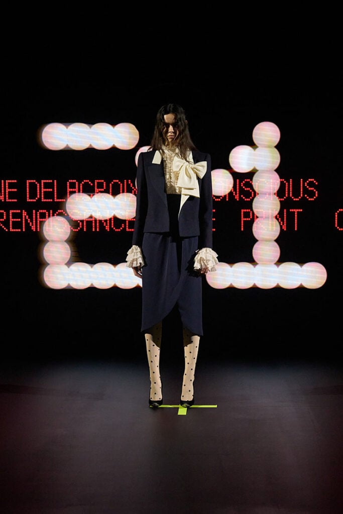 Cindy Bruna wore Jean Paul Gaultier Fall 2024 Haute Couture look by Nicolas Di Felice, and while I can’t pretend the skirt pulls weren’t slightly distracting—this is couture, after all—it doesn’t take away from how statuesque and serene she looked. The architectural silhouette balanced beautifully with the silk skirt can’t be overlooked. De Beers jewels completed her look.
