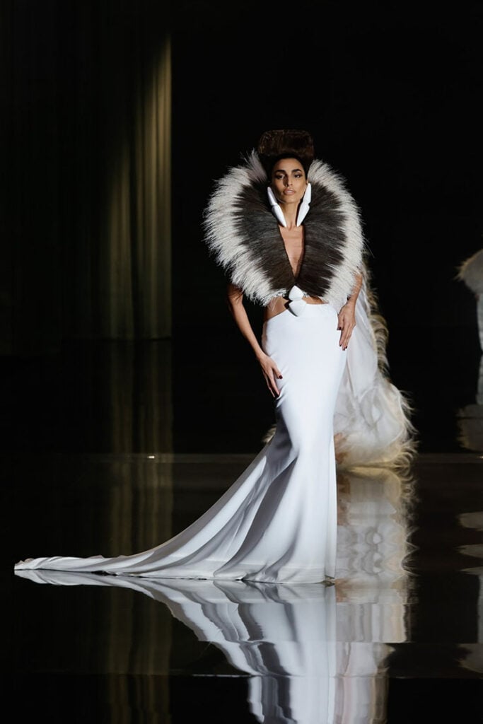 Didi Stone made sure all heads turned — and stayed turned — in her Stéphane Rolland Spring 2025 Haute Couture gown. That dual-coloured horsehair neckline didn’t just frame her face; it demanded attention. The entire look served African goddess energy, no notes. The regal pose, the elegance, the structure — this was drama done right.
