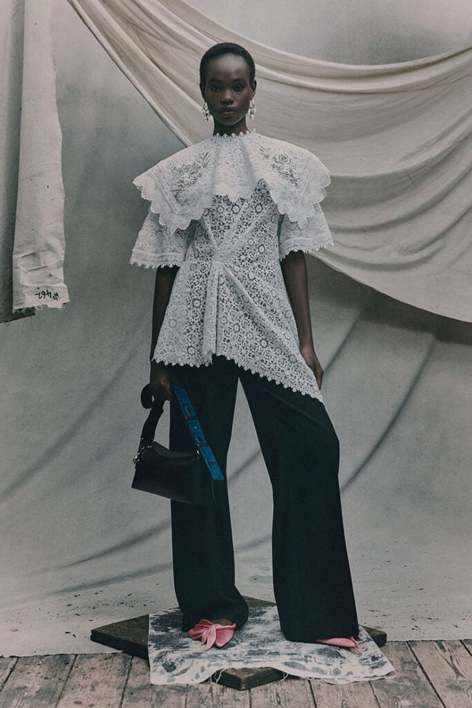Sarah Paulson brought her signature brand of clever elegance in Erdem Resort 2026 white lace top with floral embroidery and an asymmetrical hem over black trousers. The balance of romance and restraint was so her—structured, intellectual, yet softly feminine. Some might call it pilgrim-core, but she made it pure Paulson.
