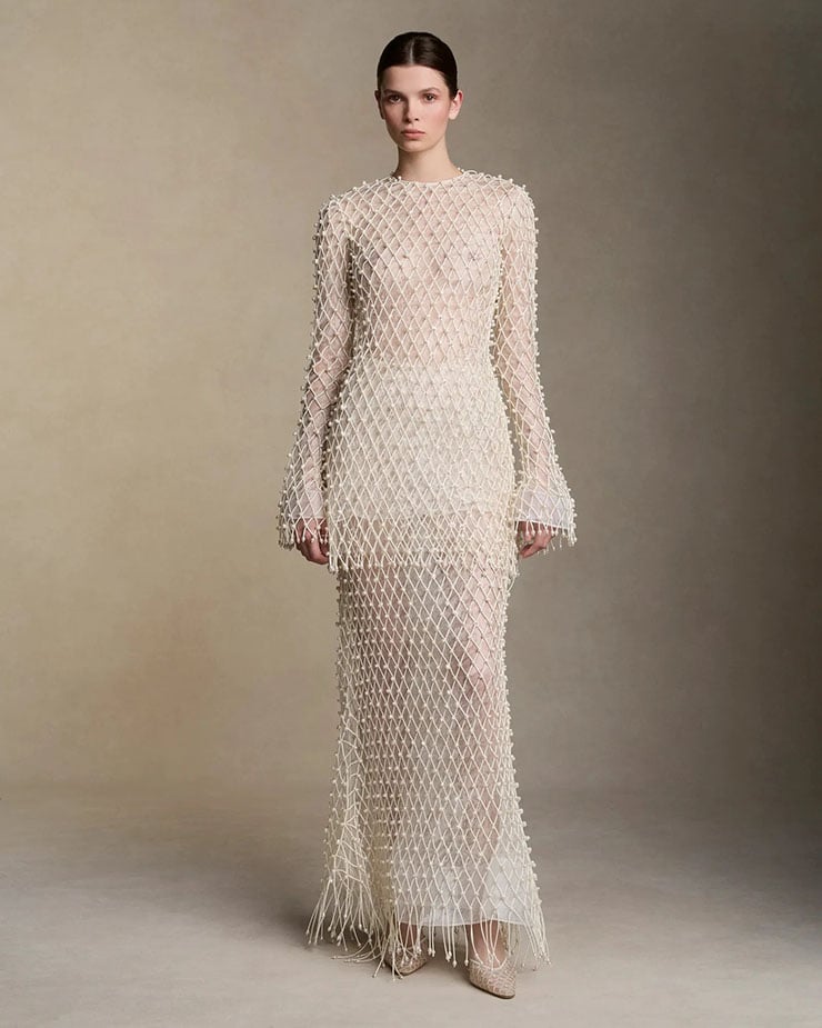 Naomi Watts embraced timeless sophistication in a Schiaparelli Spring 2025 Haute Couture black textured high-neck top paired with a fluid ivory satin skirt that created a beautiful balance between strength and softness. Her understated styling — simple jewellery, straight hair, and natural makeup — allowed the clean lines and luminous finish of the look to shine. Effortless, poised, and undeniably elegant.