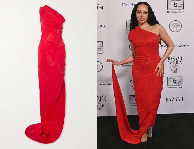 | Who: | Jade Thirlwall’s Vivienne Westwood Andreas One-Shoulder Jacquard Gown |